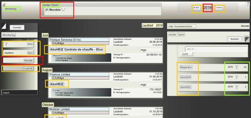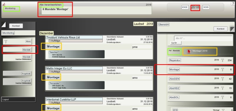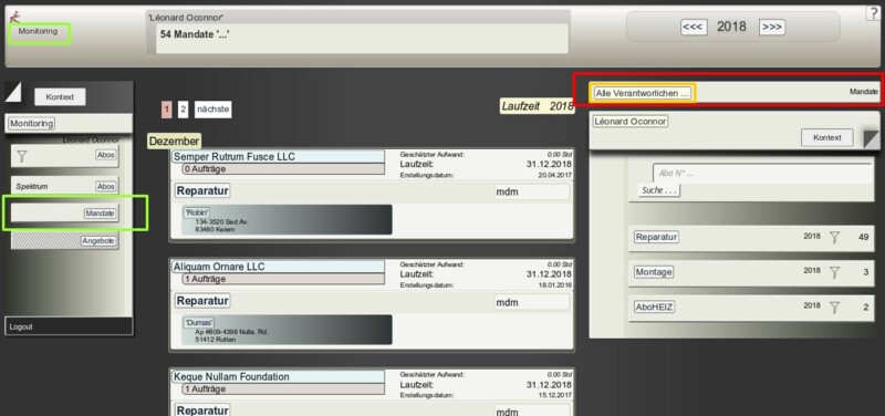 Im Monitoring können diese Mandate nach Verantwortlichkeit gefiltert angesehen werden. Das Gültigkeitsdatum ist normalerweise auf das Ende des Jahres gesetzt, kann aber auch - falls geeignet - asynchron zum Kalenderjahr verlaufen.