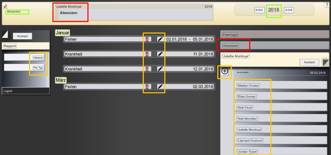 - Absenzen (Ferien, Tagesabsenz, Stundenabsenz)