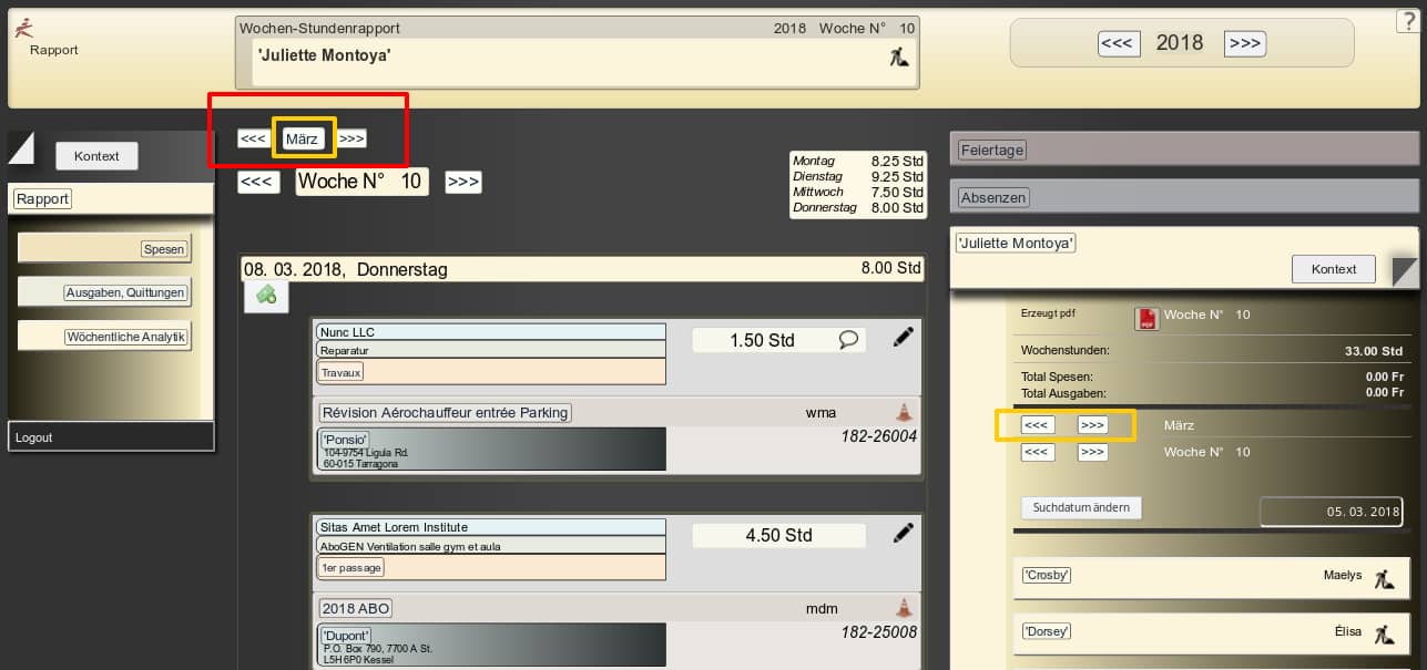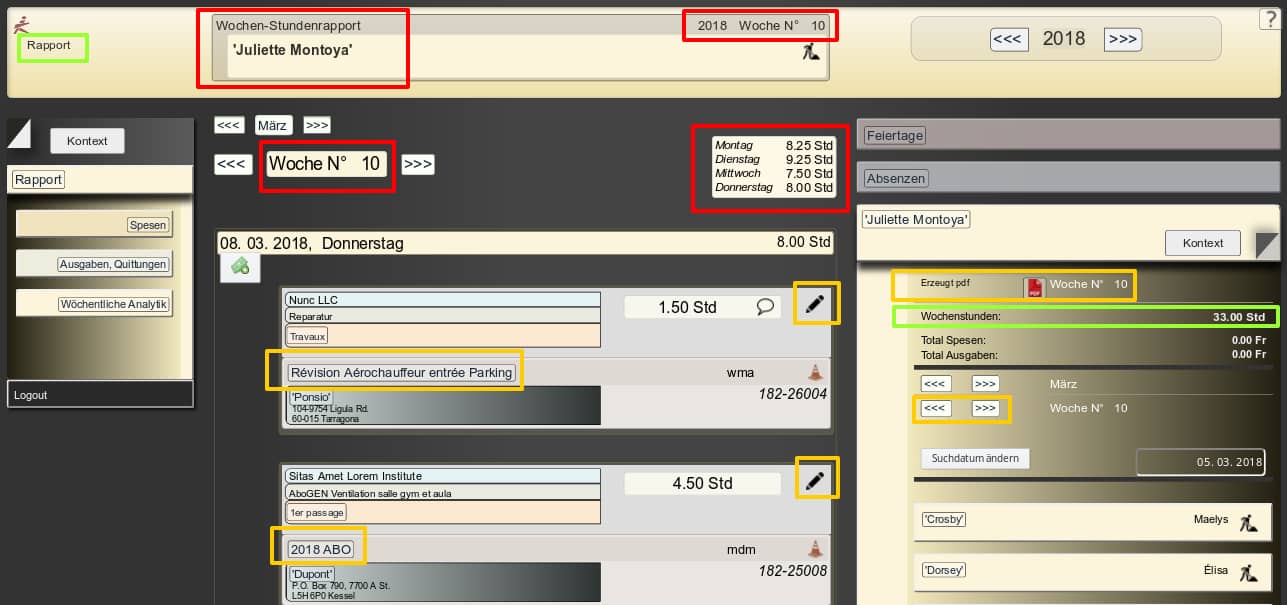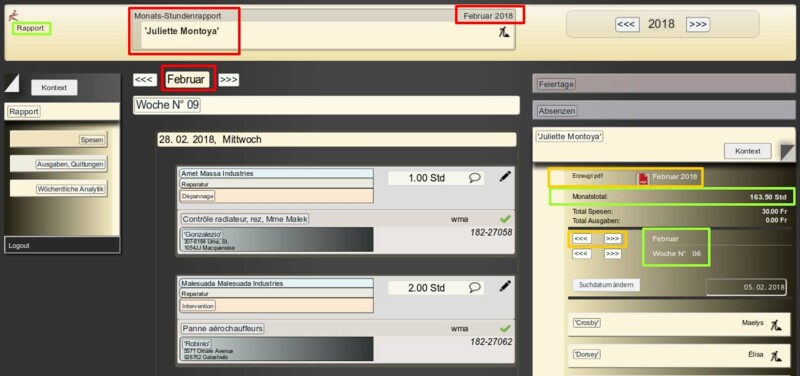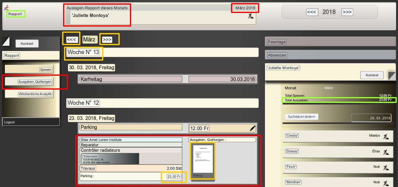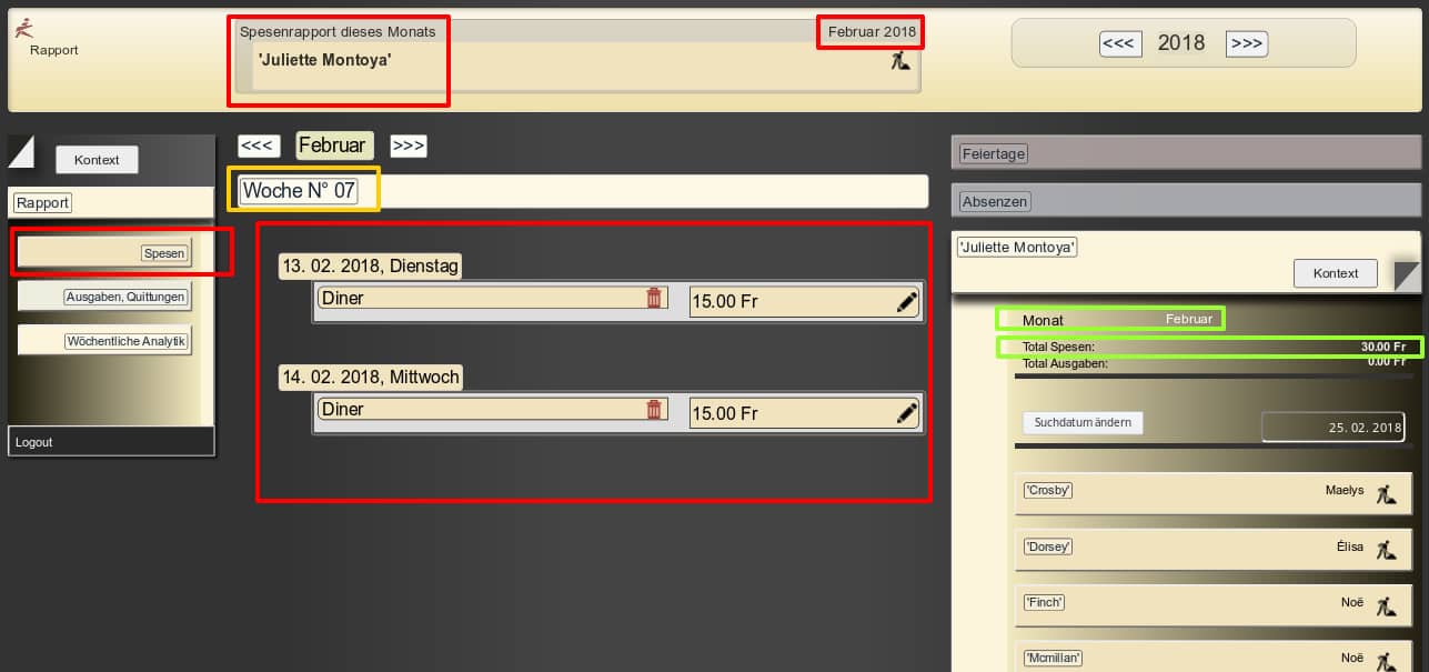 Die notierten Spesen werden aufaddiert und als Total auf dem Wochenrapport (respektive Monatsrapport) vermerkt. Zudem werden sie innerhalb des Rapports gelistet, respektive in der Wochenanalytik als Positionen gelistet.
