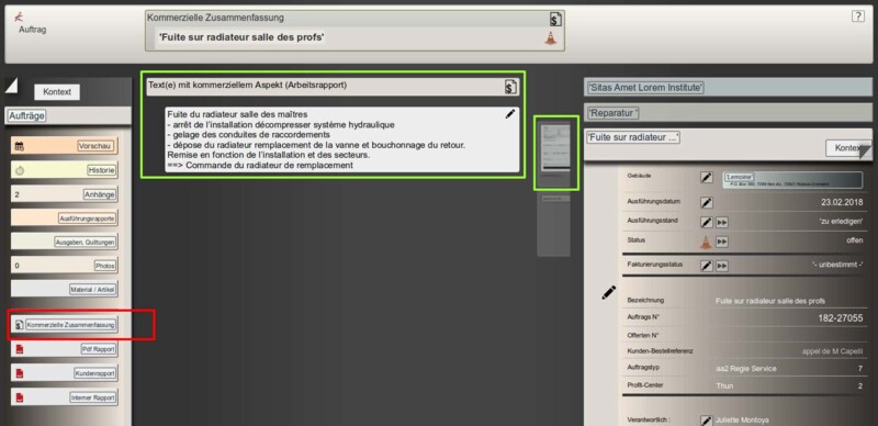 - die (kommerzielle) Auftragsbeschreibung aus dem Rapport wird als solche kopiert