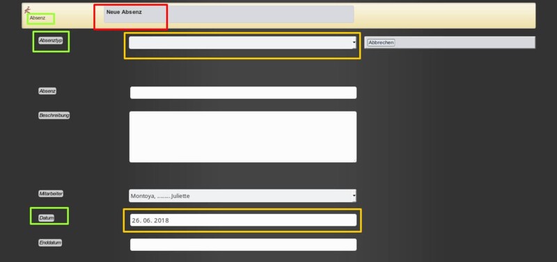 - vorhersehbare Absenzen werden normalerweise in der 'Terminplanung' eingegeben