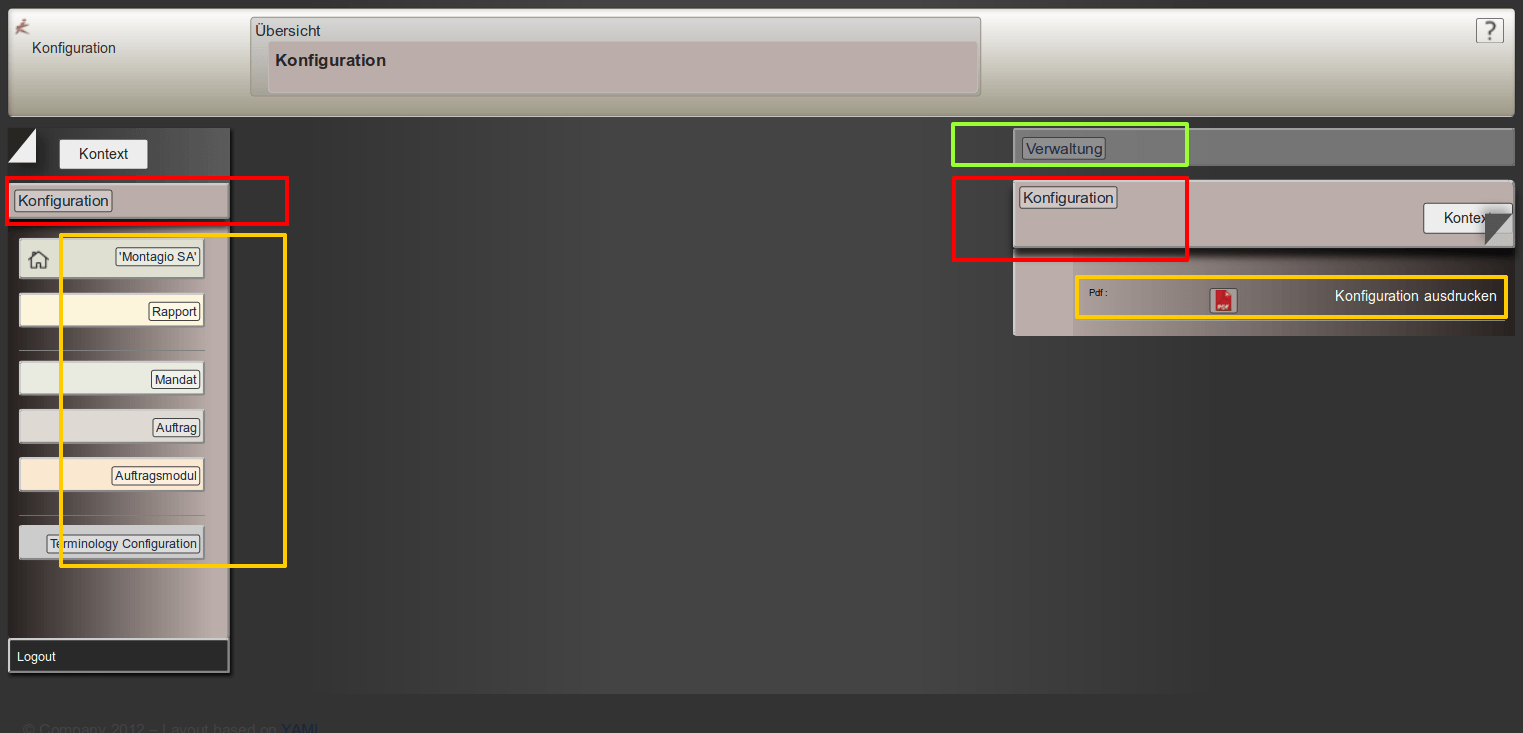 Die gesamte Konfiguration kann via Pdf ausgedruckt werden. Diese Liste ergibt einen Überblick der Komplexität einer Unternehmung, - läuft die Unternehmung eher rudimentär, oder sind die Workflows fein strukturiert. Je diversifizierter und komplexer das bewirtschaftete Geschäftsfeld, desto notwendiger wird die Feinstrukturierung.
