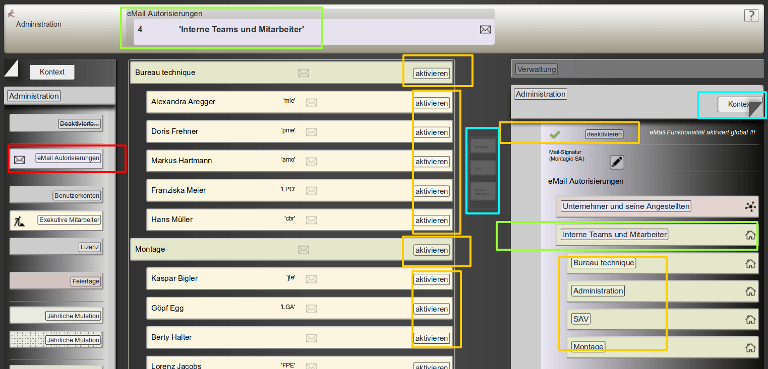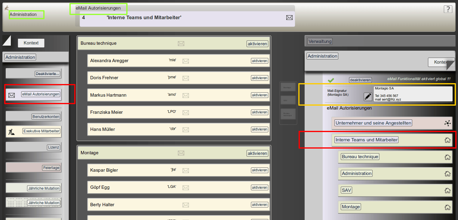 - individuelle Mail-Signaturen können nur von Mitarbeitern mit der Rolle 'Disponent' geändert werden