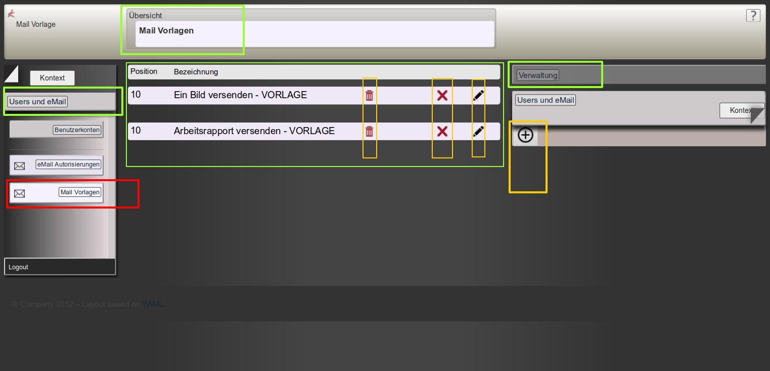 - eMail-Vorlagen können vom 'Disponenten' erstellt werden