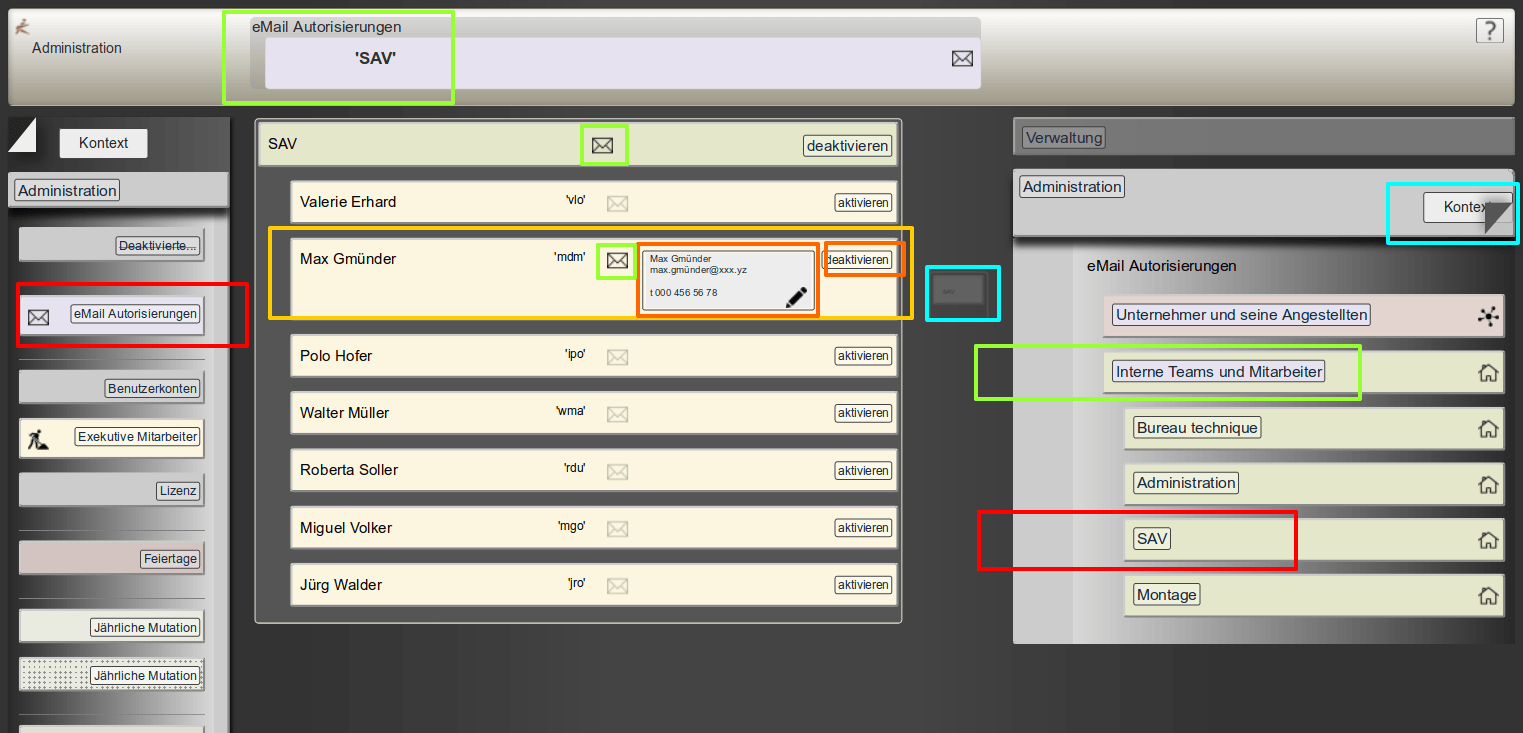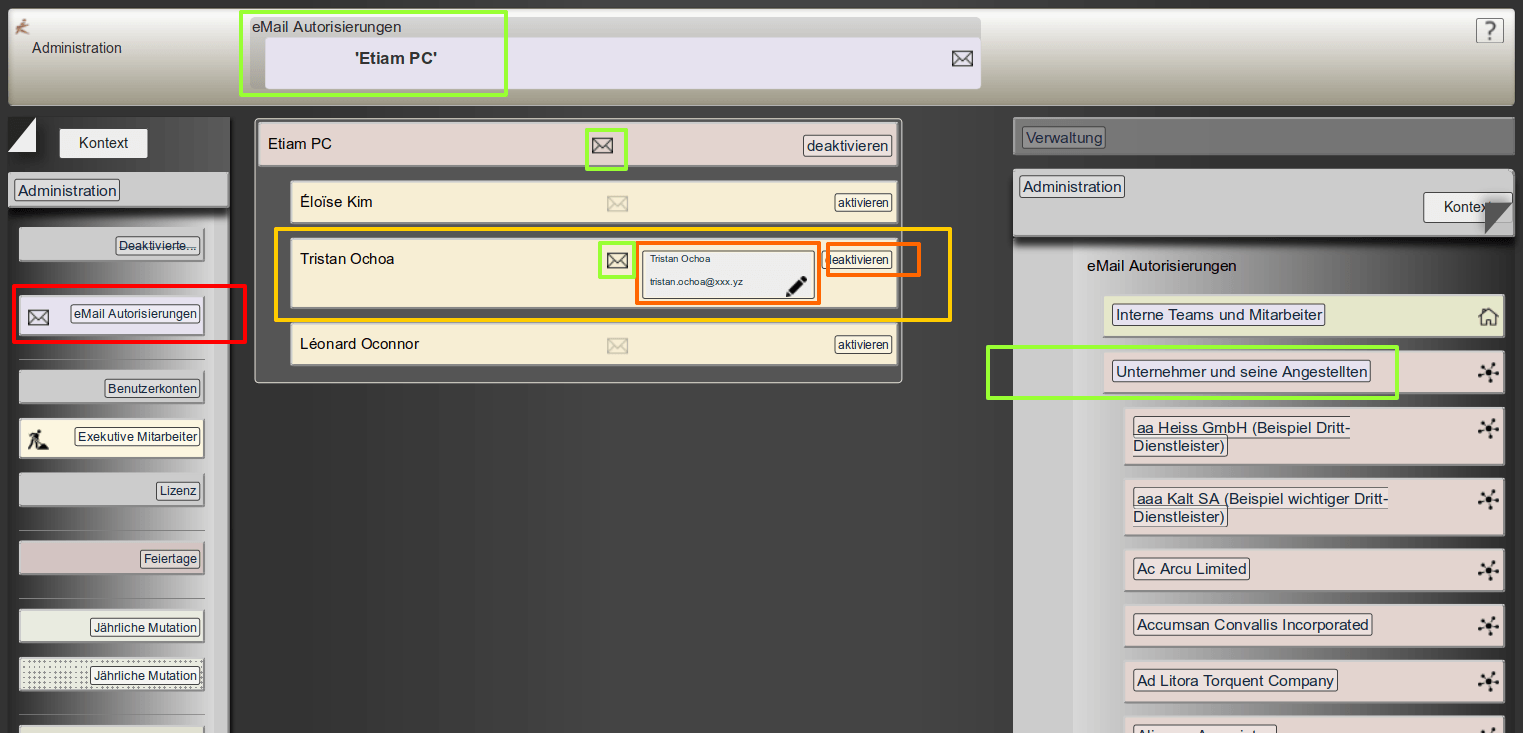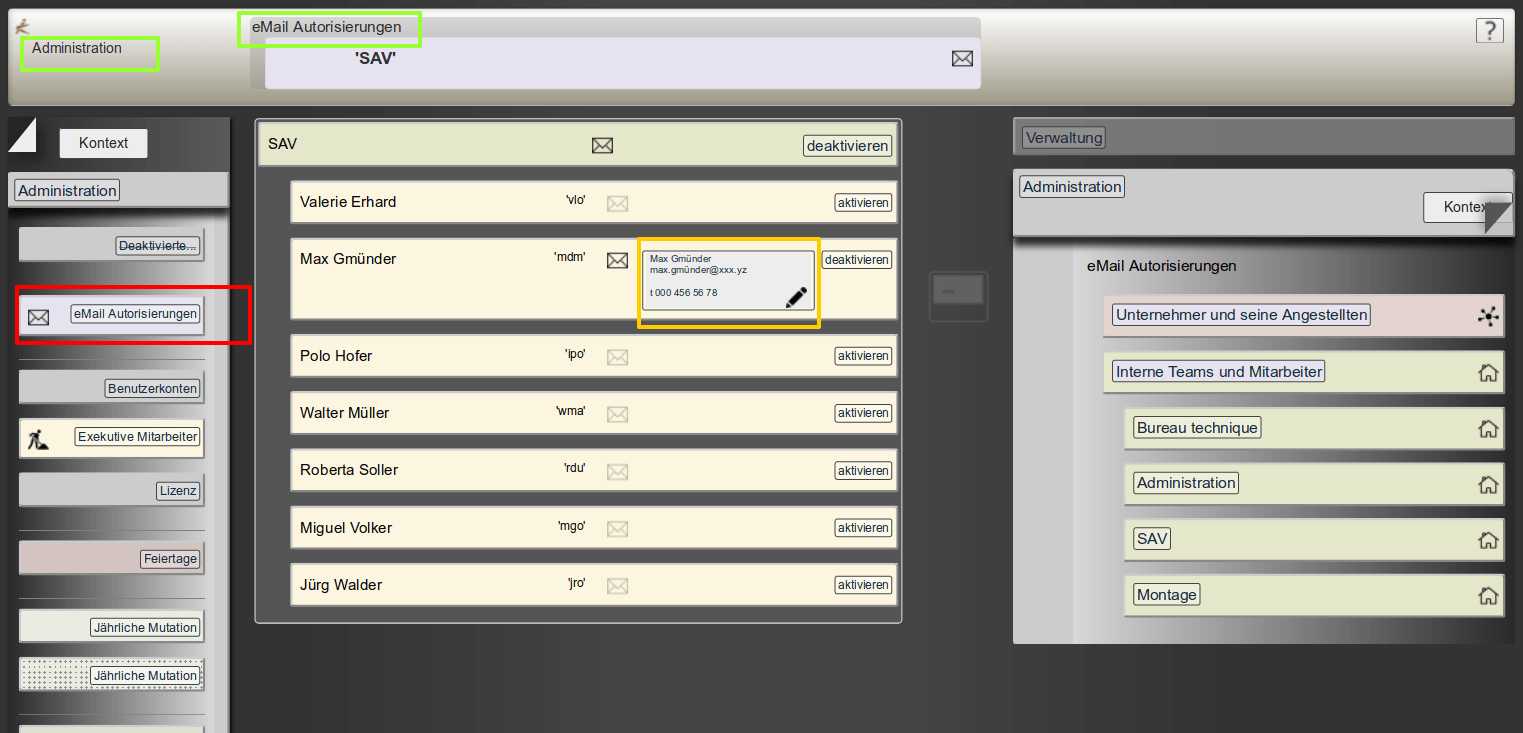 - sofern der Mitarbeiter eine eMail hinterlegt hat, so wird diese vom System vorgeschlagen