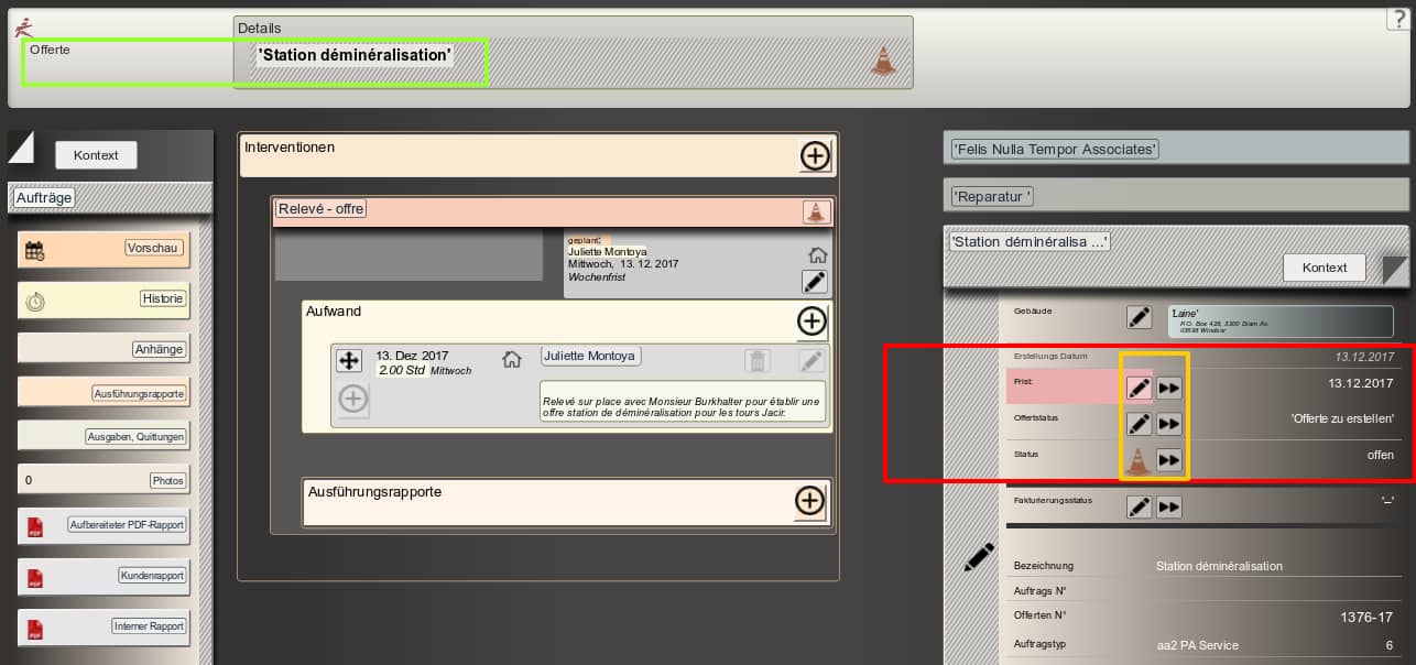 Vous adoptez alors toutes les informations de l'élaboration de l'offre. Les charges d'élaboration dans le module d'exécution respectif peuvent être étiquetées comme 'acquisition'. Ainsi dans le calcul rétrospectif les délimitations de coûts se présentent plus clairement.