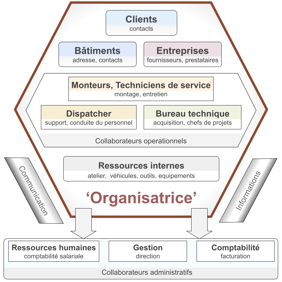 Du point de vue d'un représentant du service à la clientèle, ce n'est pas la commande qui est le module central, mais le client. Néanmoins, il a encore besoin d'accéder à toutes les informations des modules corrélés. 'Organisatrice' règle intelligemment cette logistique de l'information et offre à l'utilisateur la perspective d'information appropriée