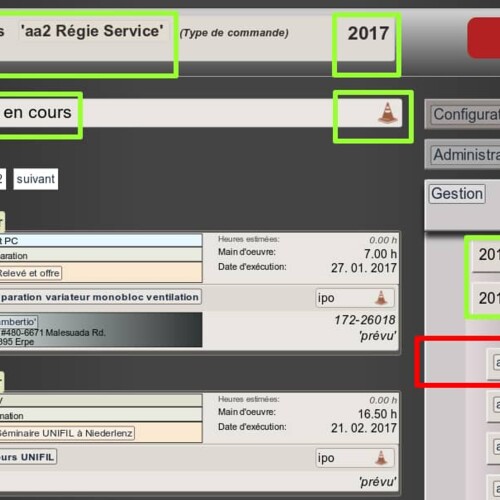 En vue directe les commandes "en progrès" sont visible, tandis que les commandes "achevés" sont énumérés dans le 'contexte'.