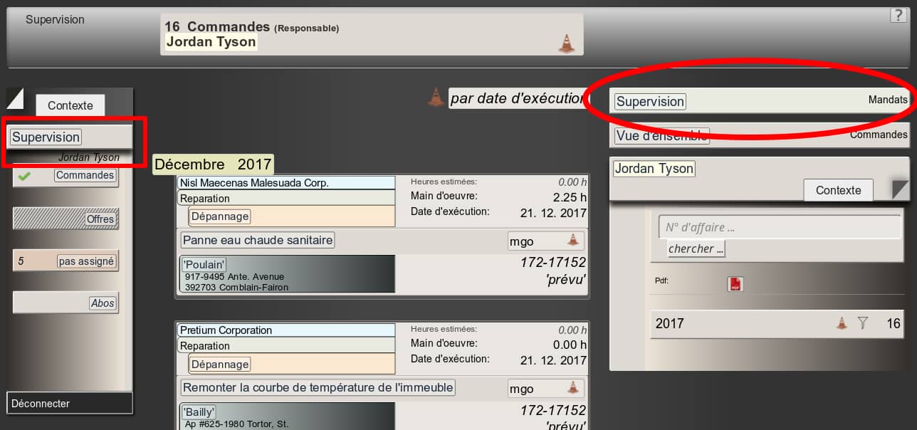 Comme chaque mandat est doté d'une "responsabilité", ceux-ci sont également visibles dans un suivi personnalisé. Entre-temps, la responsabilité de l'exécution incombe à la "personne responsable" au niveau de la commande. Ces responsabilités peuvent, mais ne doivent pas nécessairement être confiées à la même personne. Les abonnements complexes avec des prestataires tiers concernés requièrent une certaine compétence administrative.