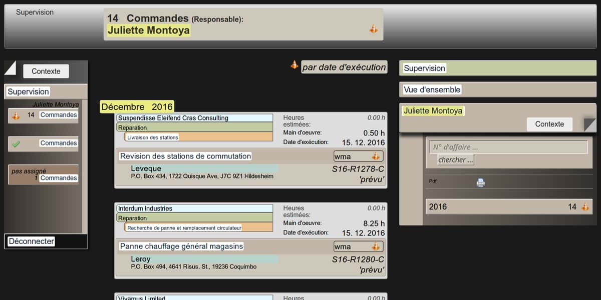 Un schéma de couleurs reflète toujours la perspective dominantes dans laquelle on navigue actuellement. Les menu correspondants se manifestent coloré de manière respective. Ce principe de navigation se montre peut-être un peu lourd au début, mais vous économise énormément de cliques de souris.
